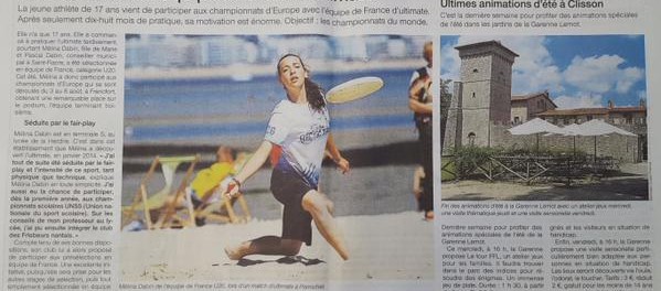 Super article sur Mélina, dans @OuestFrance le 24 aout Médaille de Bronze #EYUC2015 #FranceUltimate #U20 #Féminine http://t.co/OKtAbl1urk
